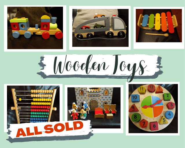 When my son was a toddler we accumulated quite a few wooden toys for him. Among other things, he had a wooden pull-along truck, a wooden fold-away castle, a wooden educational clock and an abacus. These items were still in lovely condition when he had finished playing with them. I decided to sell them locally online. I did so by selling them in very reasonably priced batches.