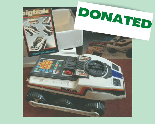 We also had an old “Big Track” toy. It was not in full working order because our son did not like the noise it made. We had removed the sound card that gave it the ability to make noises and used it silently. However, you could still give the “Big Track” instructions for it to navigate across the room as it was designed to do.
