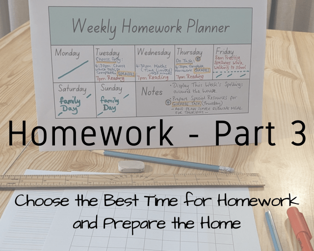 In this blog post, we will consider how you can identify the best time of day and the best days each week to do homework with your children. We will also discuss how you can prepare your home environment for each homework session.